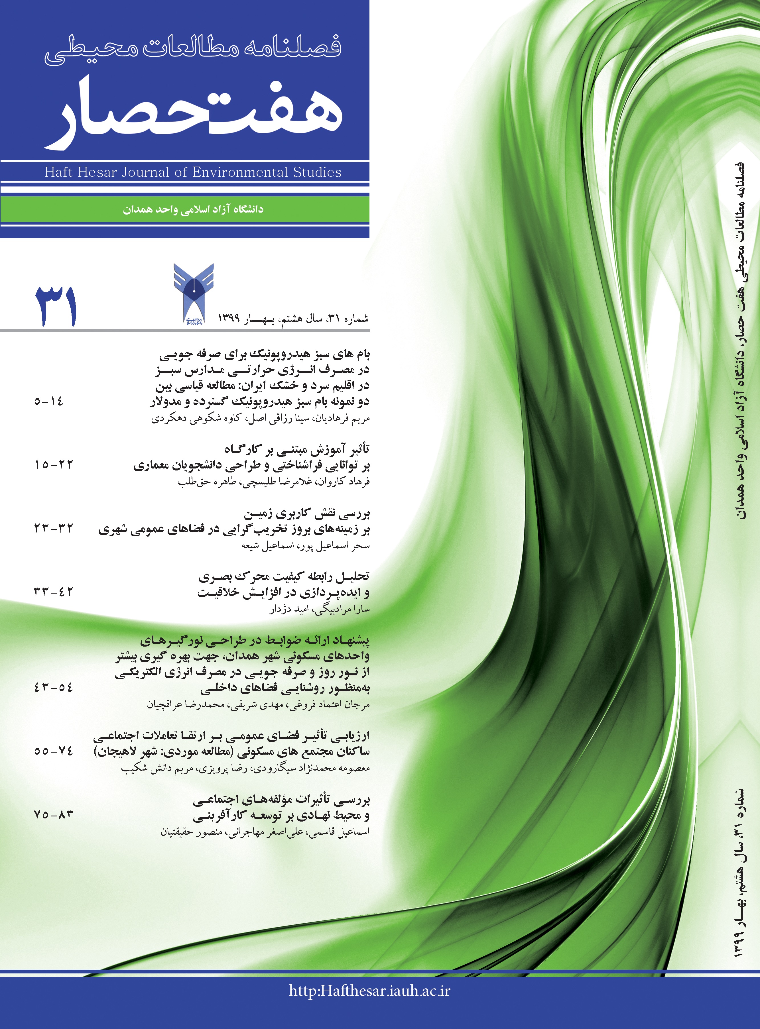 جلد مجله. مطالعات محیطی هفت حصار. 1399; 8 (31)